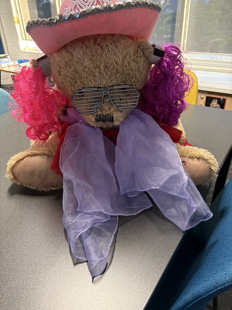 Now, Sparkles brings joy to students and staff by mysteriously popping up in different places around the school each day. Sometimes he’s dressed up, sometimes he’s caught in a bit of mischief, and sometimes he’s simply enjoying life as part of our school community. Sparkles reminds us to stay curious, kind, and ready for a little bit of fun each day.